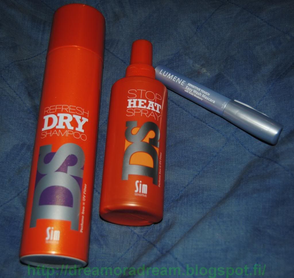 | Fanletti: DS kuivashampoo 14,95€, DS lämpösuoja 13,95 ja Lumene Easy Wash Mascara (lahja) |