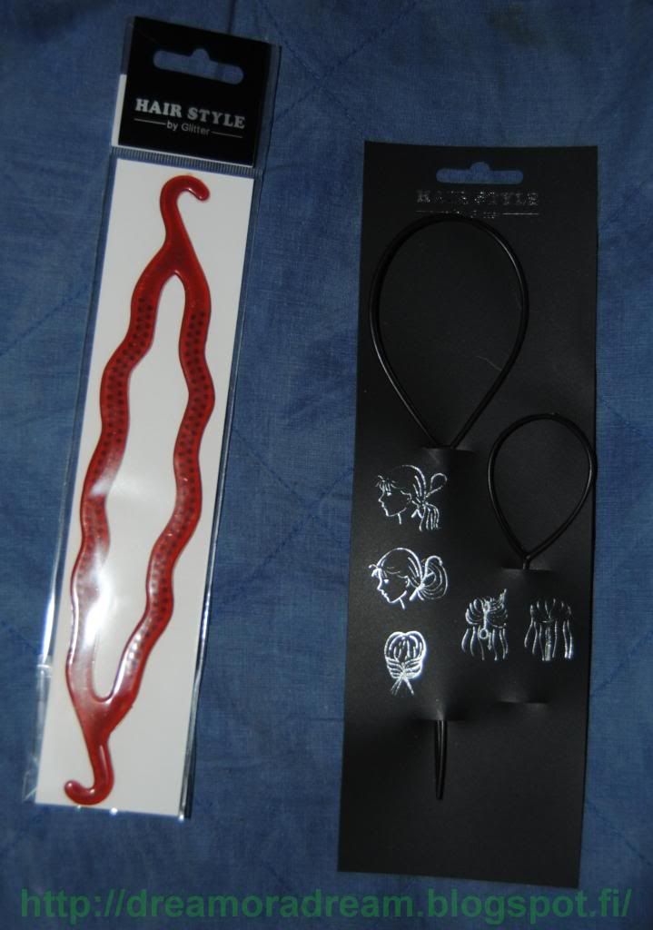 Glitteristä tarttu mukaan myös pari erilaista hiuslassoa. Sitten pitäisi opetella vielä käyttään noita... :D Vinkkejä?