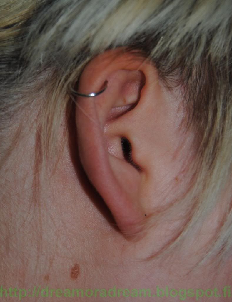 Ostin myös aidot hopearenkaat rustoa varten, kun oon pitäny siinä jotain halpoja nappeja enkä oo ihan niin hyvin kun pitäis jaksanu desinfioida ni siinä on sellanen tulehduskierre päällä aina kun laittaa korun :D Ni nyt ostin sitten aidon korun niin jos saisin ton reiän kuntoon.