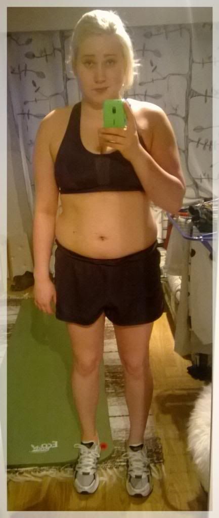 Tässä on se ruho josta pitäis saada läski palaa. Päivä 1, toivottavasti päivän 10 kuva näyttää paremmalta.